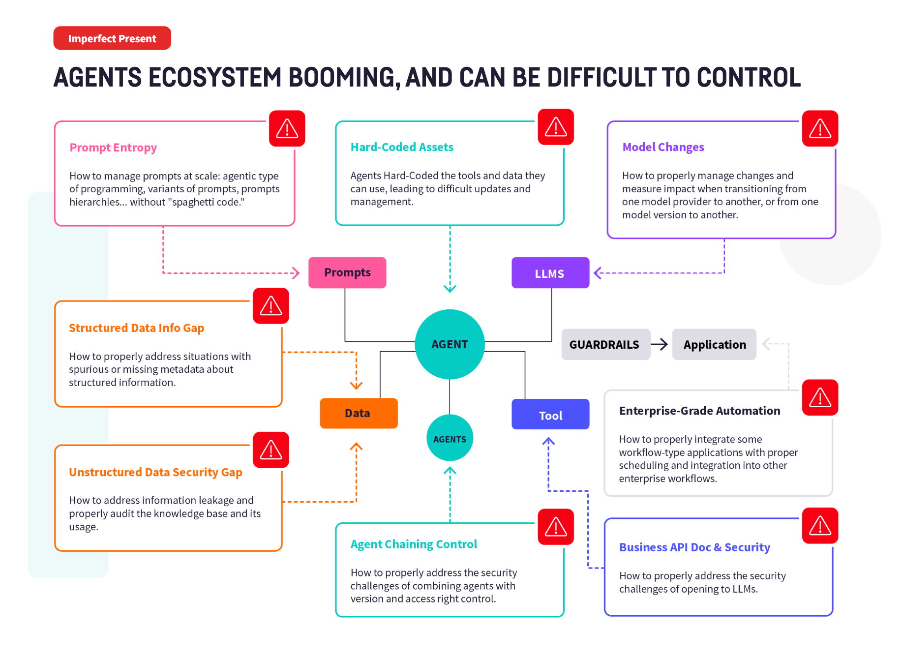 Fears: job disruption, security risks, ethical blind spots, unpredictable behaviors like prompt entropy or unstructured data leakage.
