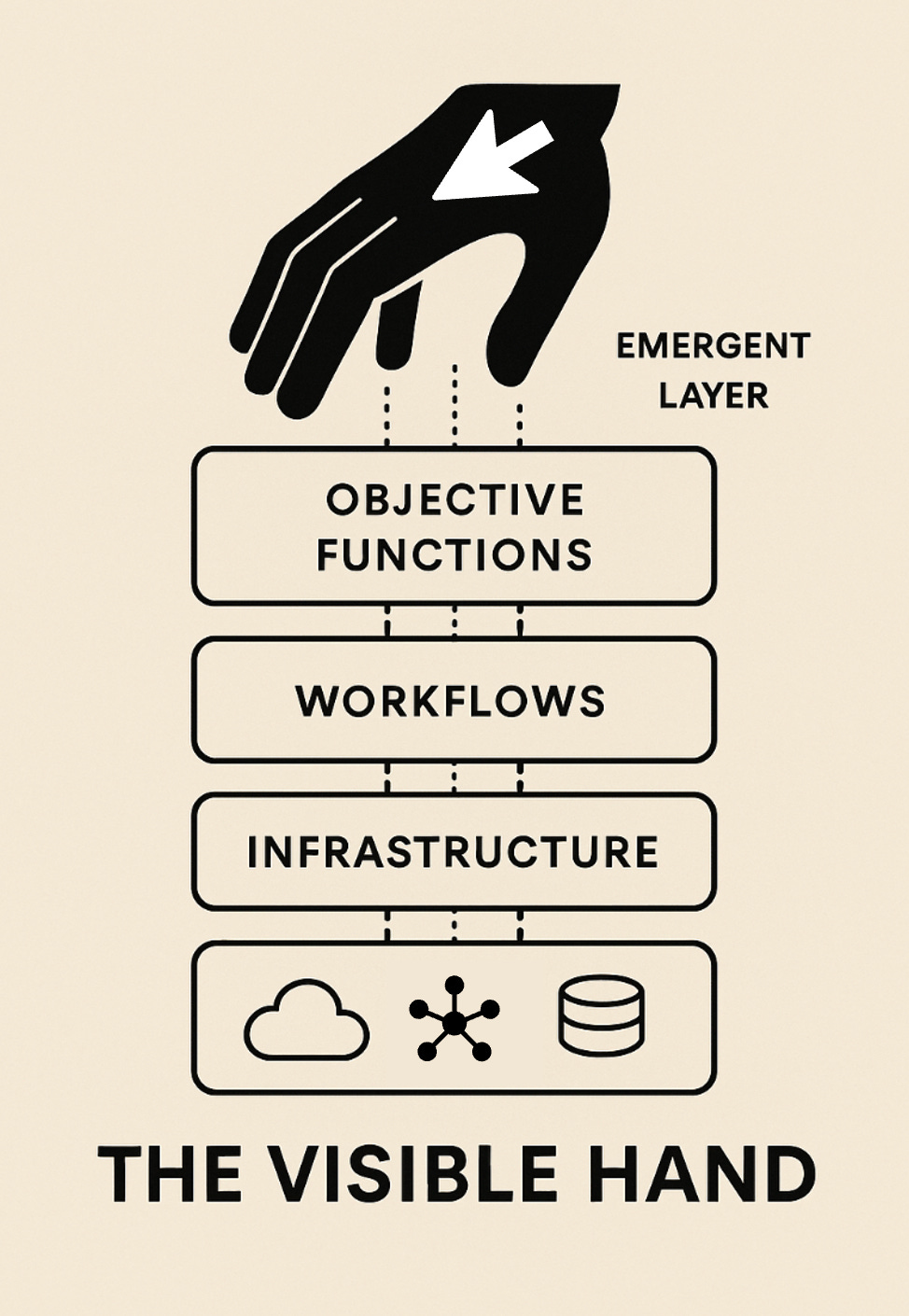 At the top is the emergent layer: the visible hand itself—an observable, measurable pattern of decision-making where once there was only intuition.